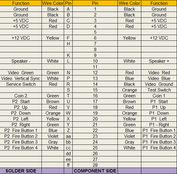 Brand new JAMMA wiring harness made of high quality UL1007 wire. All connections to your joystick and push button micro-switches are included and already fully assembled. The wires are all hand soldered through eye-loops to the high quality 56-pin edge connector, and then are fully heat shrink treated for extra protection.